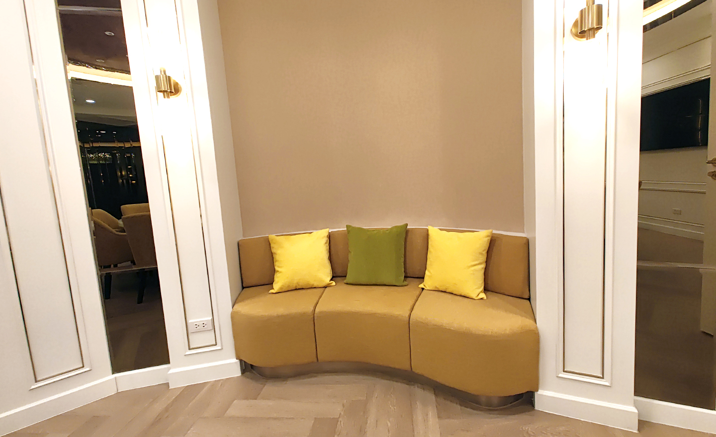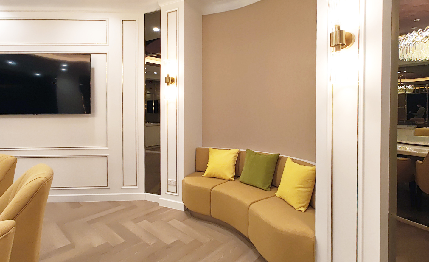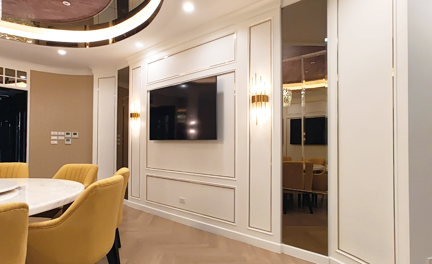 ห้องอาหารโต๊ะกลม รองรับได้ 10 ที่นั่ง ให้บรรยากาศโทนอบอุ่นนั่งสบาย ให้ทุกท่านได้พูดคุย และมีความสุขในการทานอาหารร่วมกัน การทานข้าวอย่างเป็นกันเอง คล้ายรูปแบบทานอาหารที่บ้านกับครอบครัว